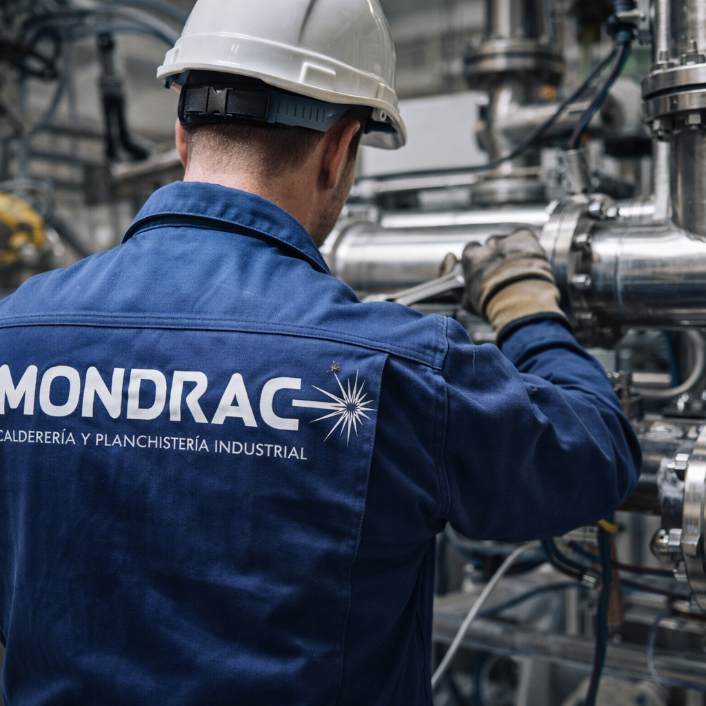 Mondrac opera en tres líneas principales: calderería metálica, estructuras metálicas de gran volumen (pórticos y grandes conjuntos) y mantenimiento industrial in situ. Trabajamos una amplia variedad de materiales —acero al carbono, inoxidable, galvanizado y aluminio, entre otros— para ofrecer soluciones a medida, desde la planta hasta el cliente